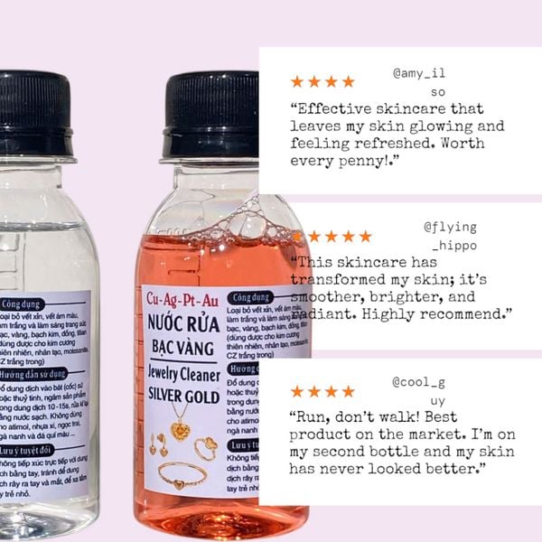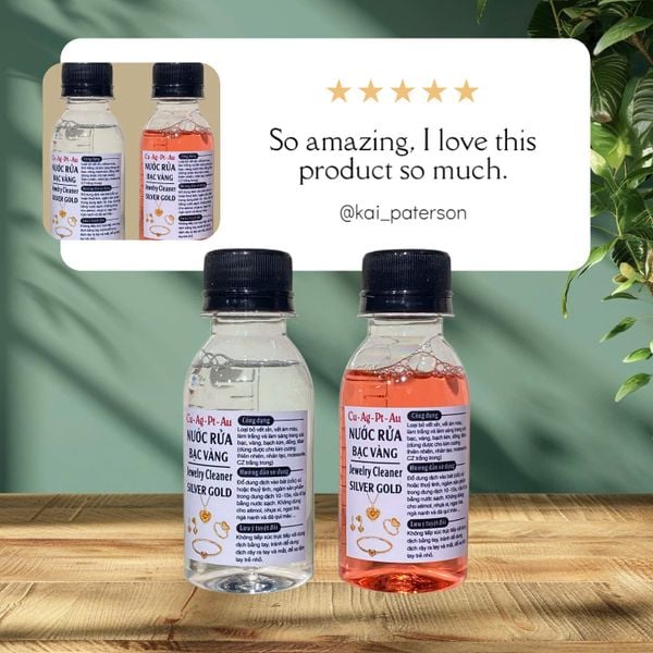 3. **An toàn và dễ sử dụng:** Sản phẩm được làm từ các thành phần an toàn, không gây hại cho da tay hay kim loại trang sức. Bạn chỉ cần ngâm trang sức vào dung dịch, sau đó rửa lại bằng nước sạch, và thấy ngay sự khác biệt!